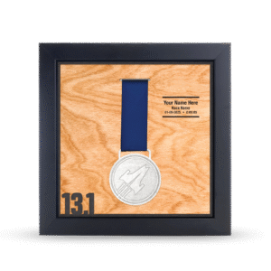 Celebrate your accomplishments with a fully custom race display designed just for you. From medal placement to photo space and personalized details, every element is tailored to reflect your unique race experience.