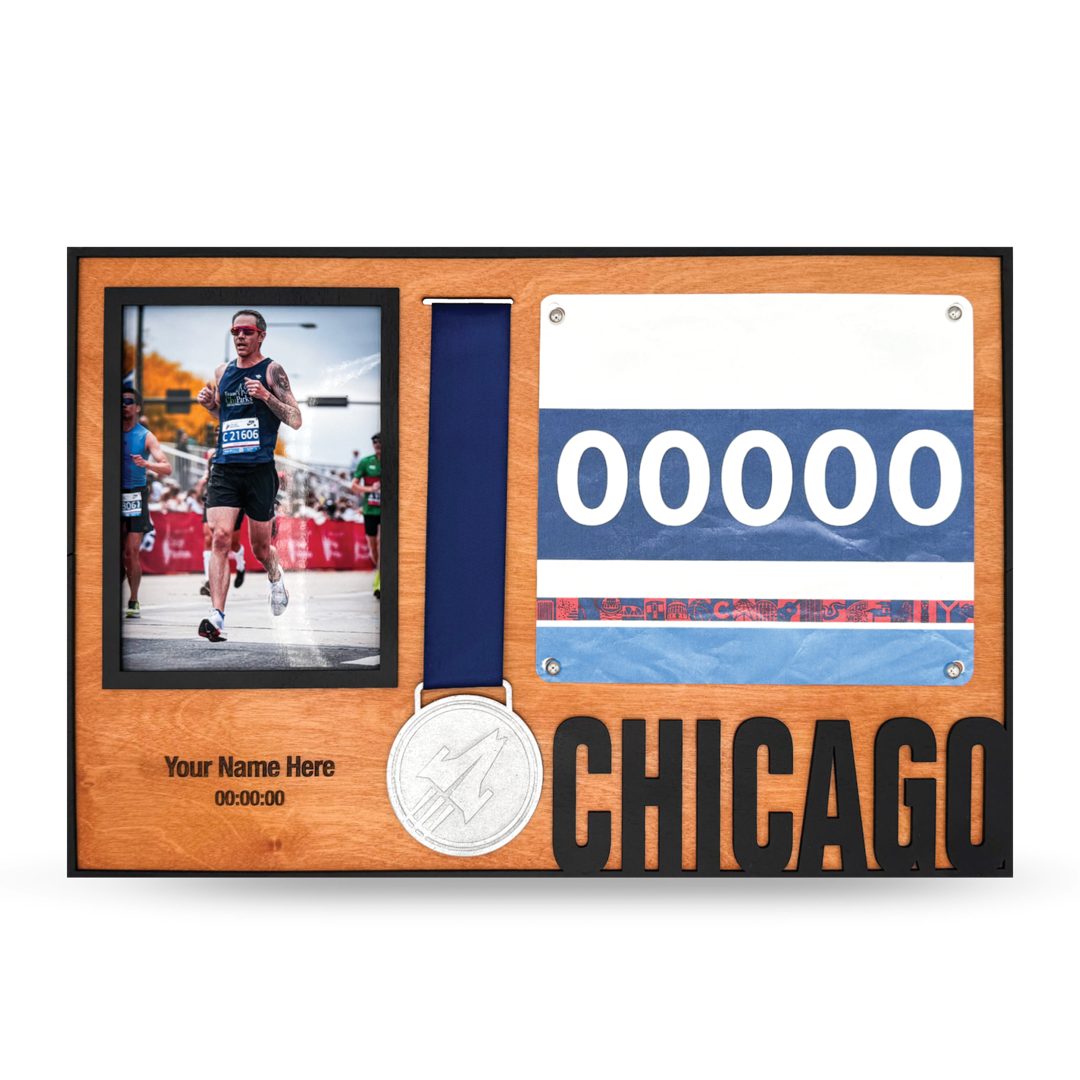 Celebrate your 26.2 miles through the Windy City with this Chicago marathon medal display. Designed for runners who conquered the course and crossed the finish line, this holder showcases your hard-earned medal with pride. Personalize it with your name, race year, or custom text to create a keepsake that reflects your achievement. Perfect for Chicago runners or as a thoughtful gift for any marathon finisher.