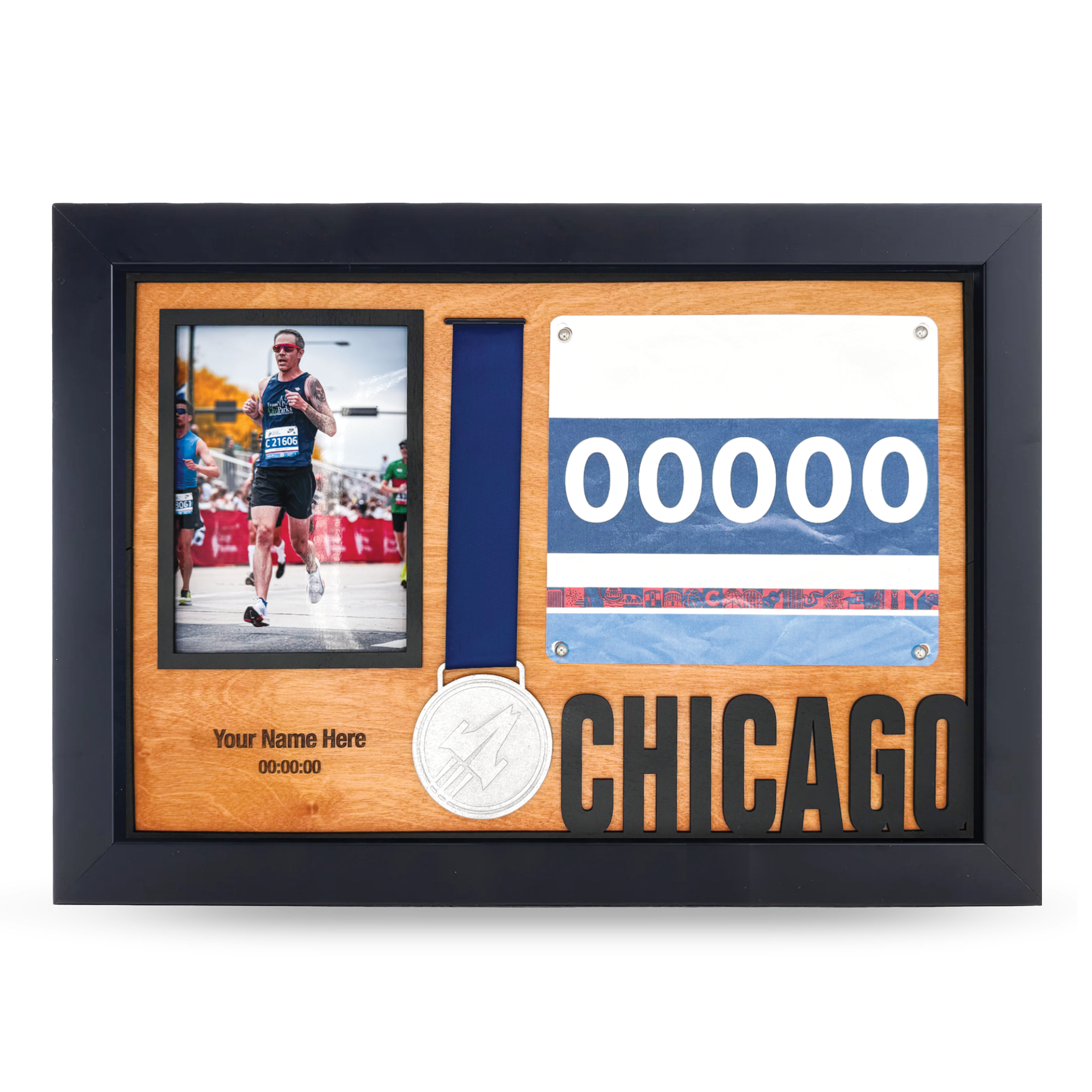 - A dedicated space to mount a photo from race day—whether it’s your finish line moment, a mid-race memory, or a snapshot with loved ones
