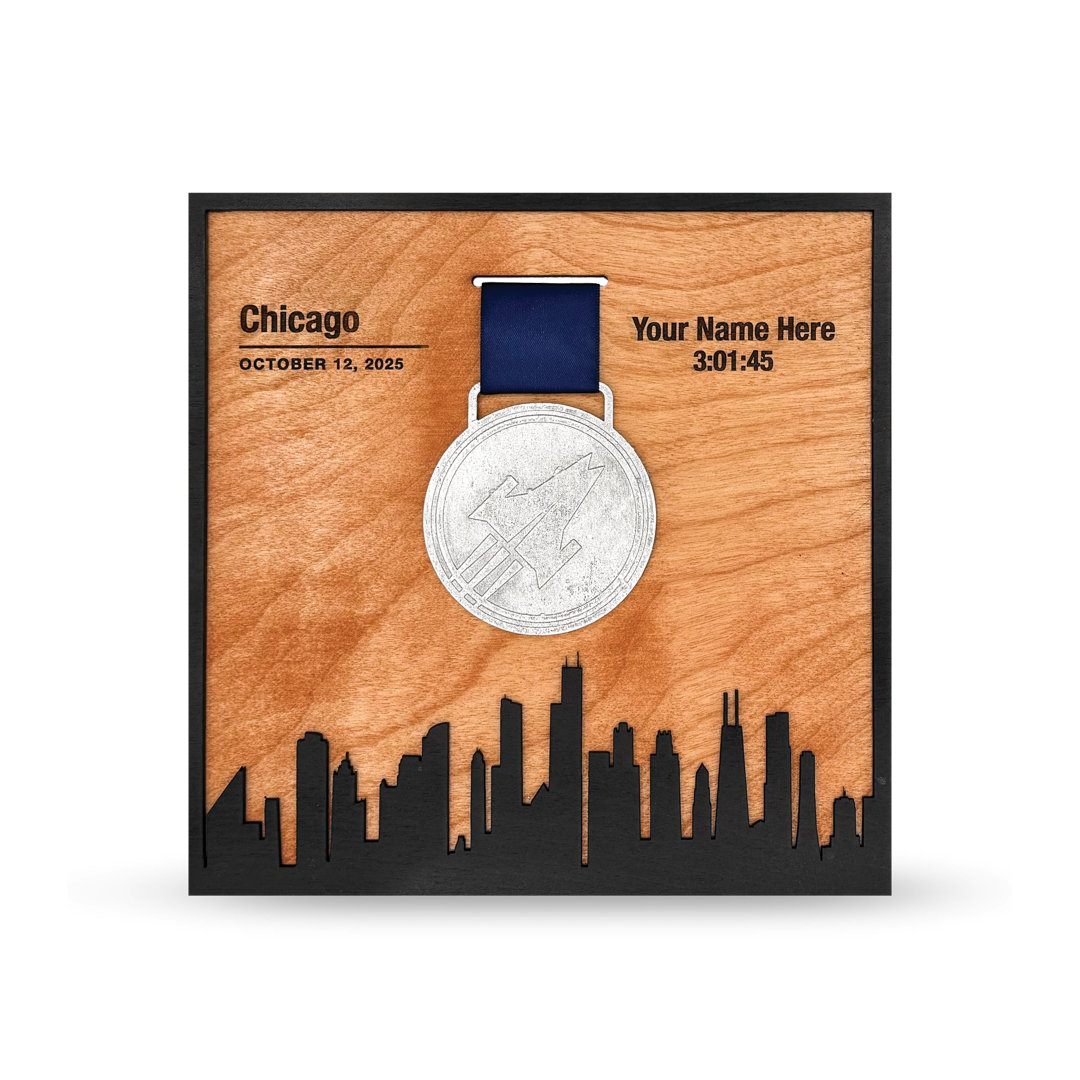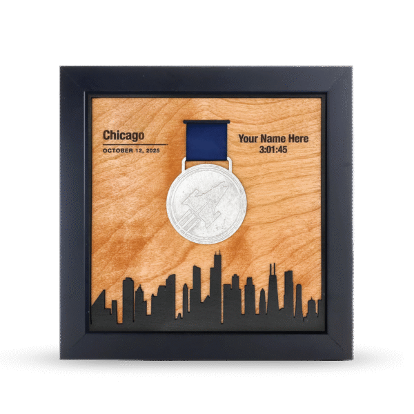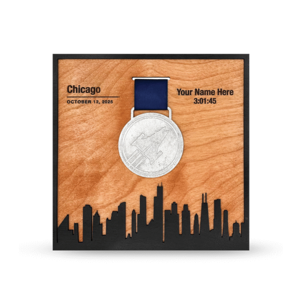 Celebrate your 26.2 miles through the Windy City with this Chicago marathon medal display. Designed for runners who conquered the course and crossed the finish line, this holder showcases your hard-earned medal with pride. Personalize it with your name, race year, or custom text to create a keepsake that reflects your achievement. Perfect for Chicago runners or as a thoughtful gift for any marathon finisher.