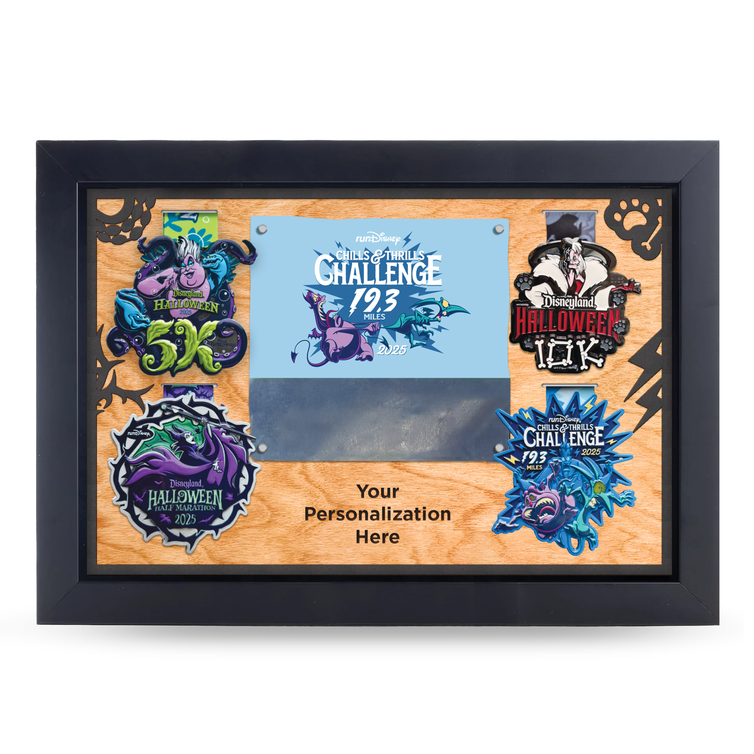Taking on 19.3 miles in a Halloween-themed race challenge is no small feat. From your three individual race medals to your hard-earned challenge medal, this display is designed to showcase all four accomplishments together in one place. Celebrate your endurance, your dedication, and bring a touch of spooky-season spirit to your running achievements.
