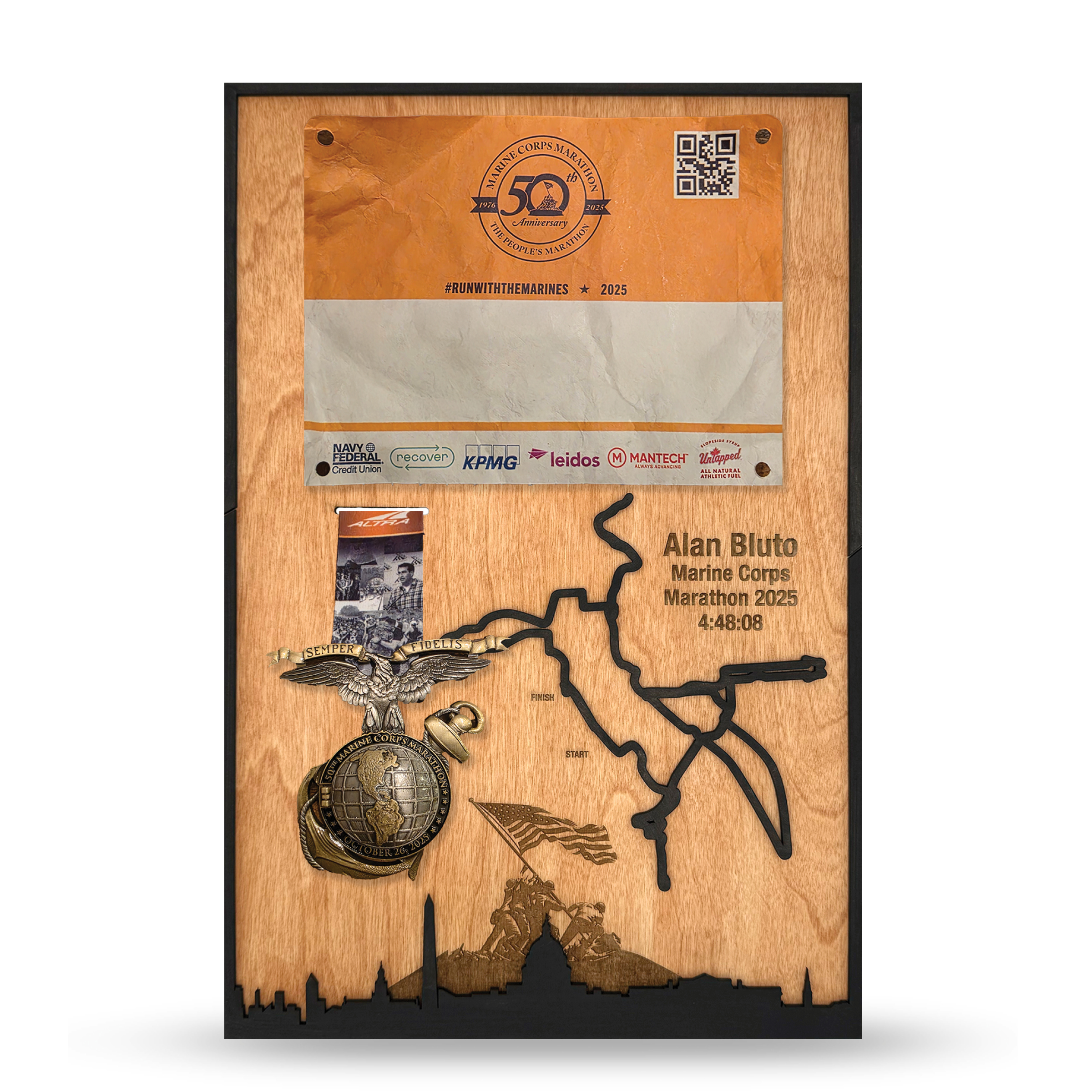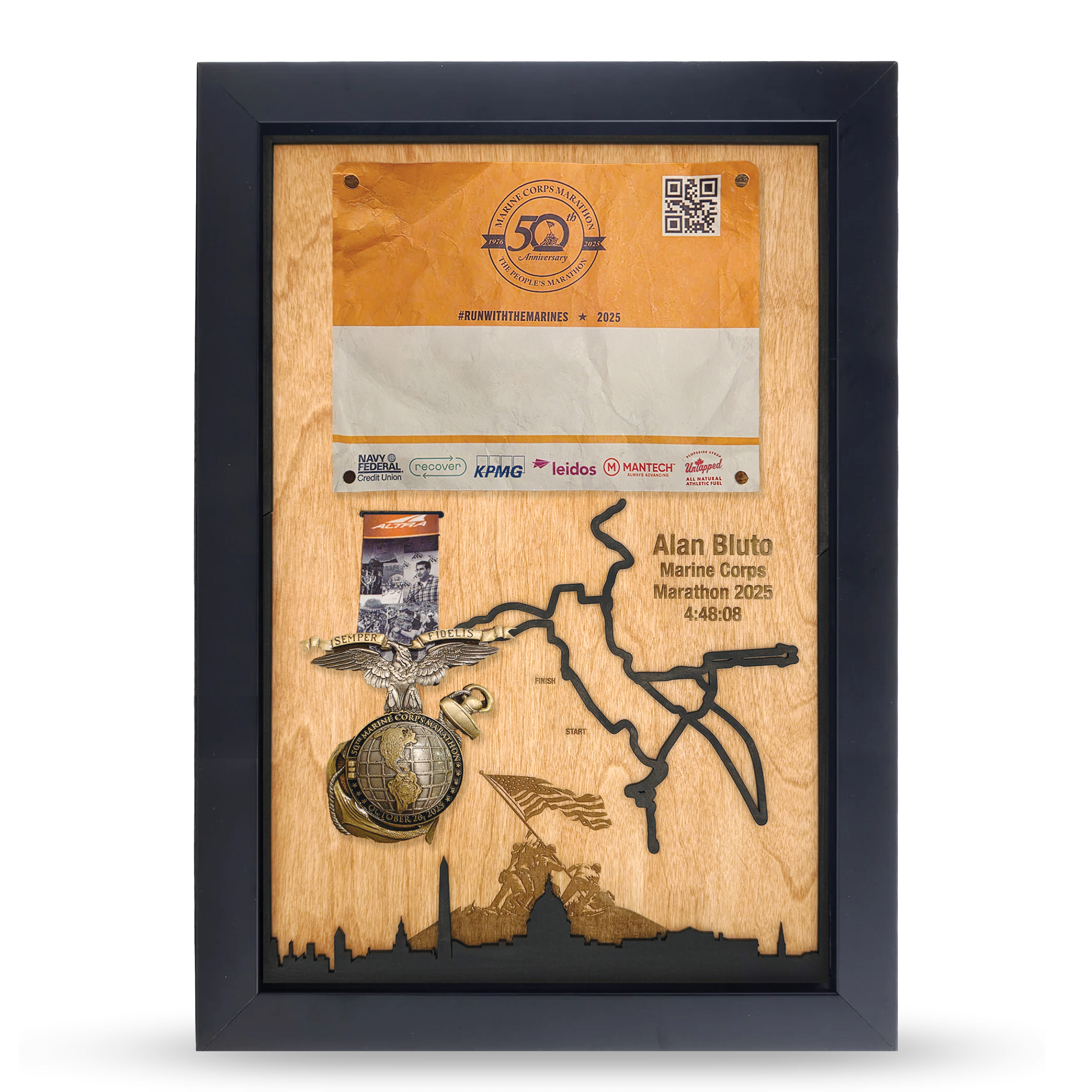 - A dedicated space to mount a photo from race day—whether it’s your finish line moment, a mid-race memory, or a snapshot with loved ones